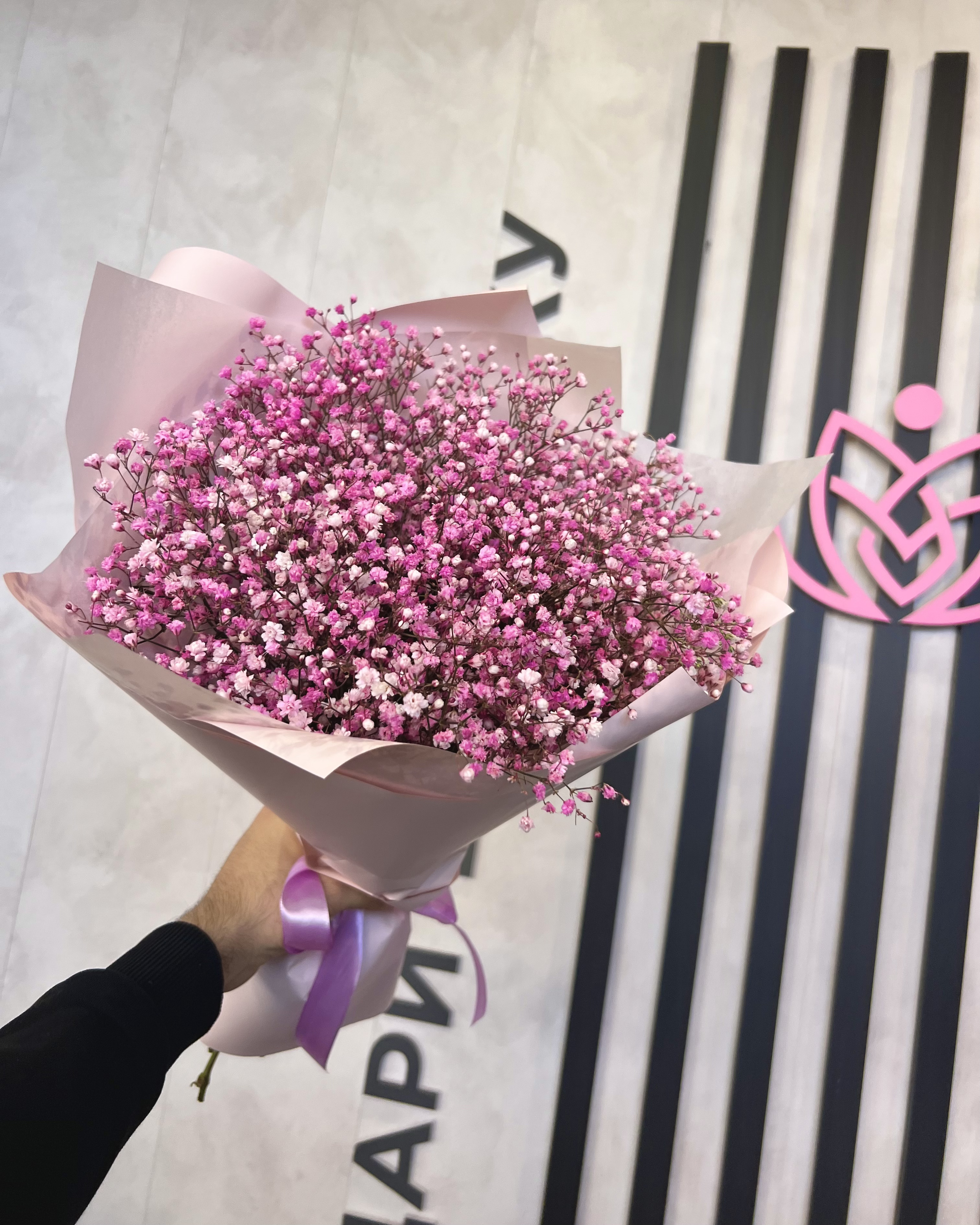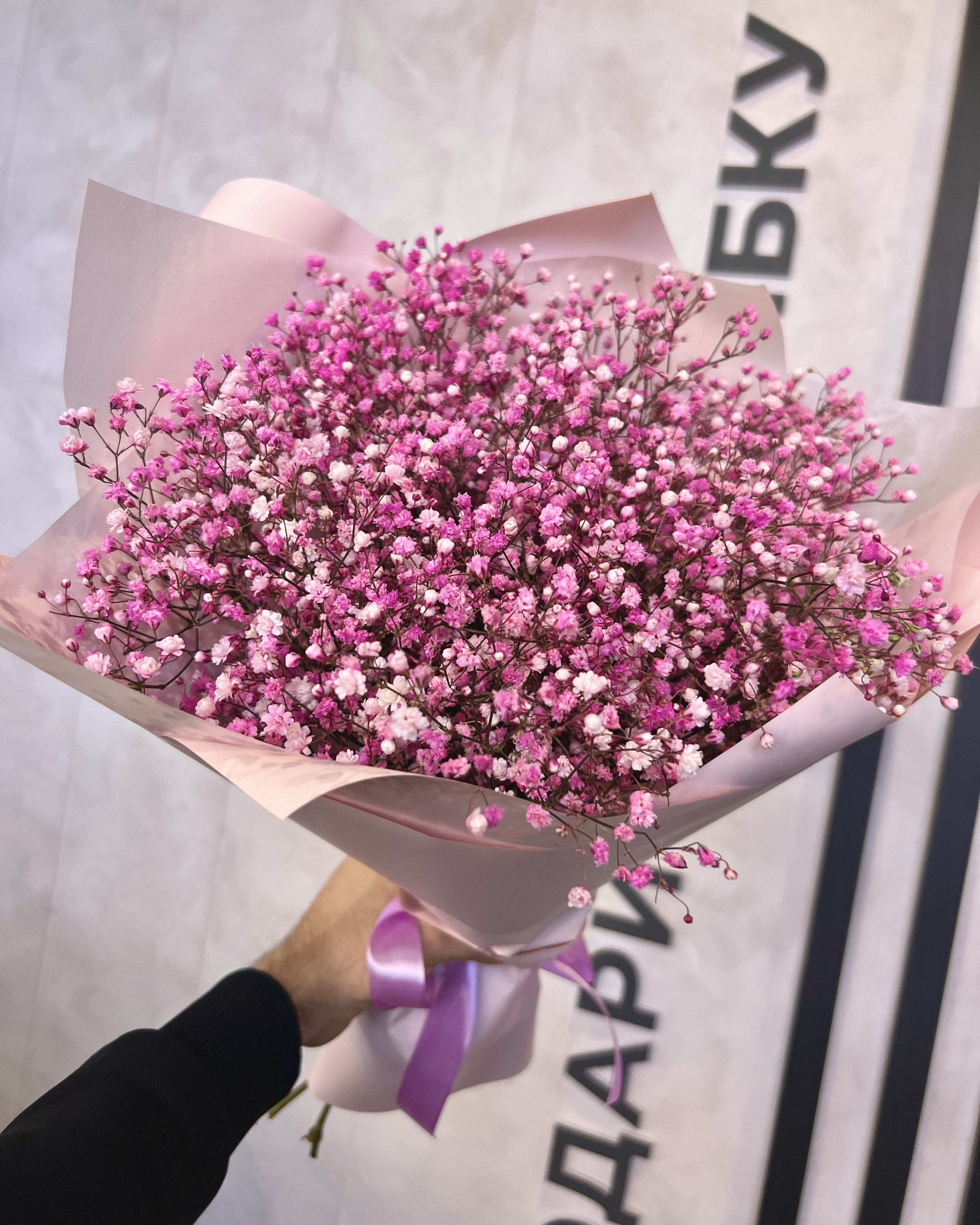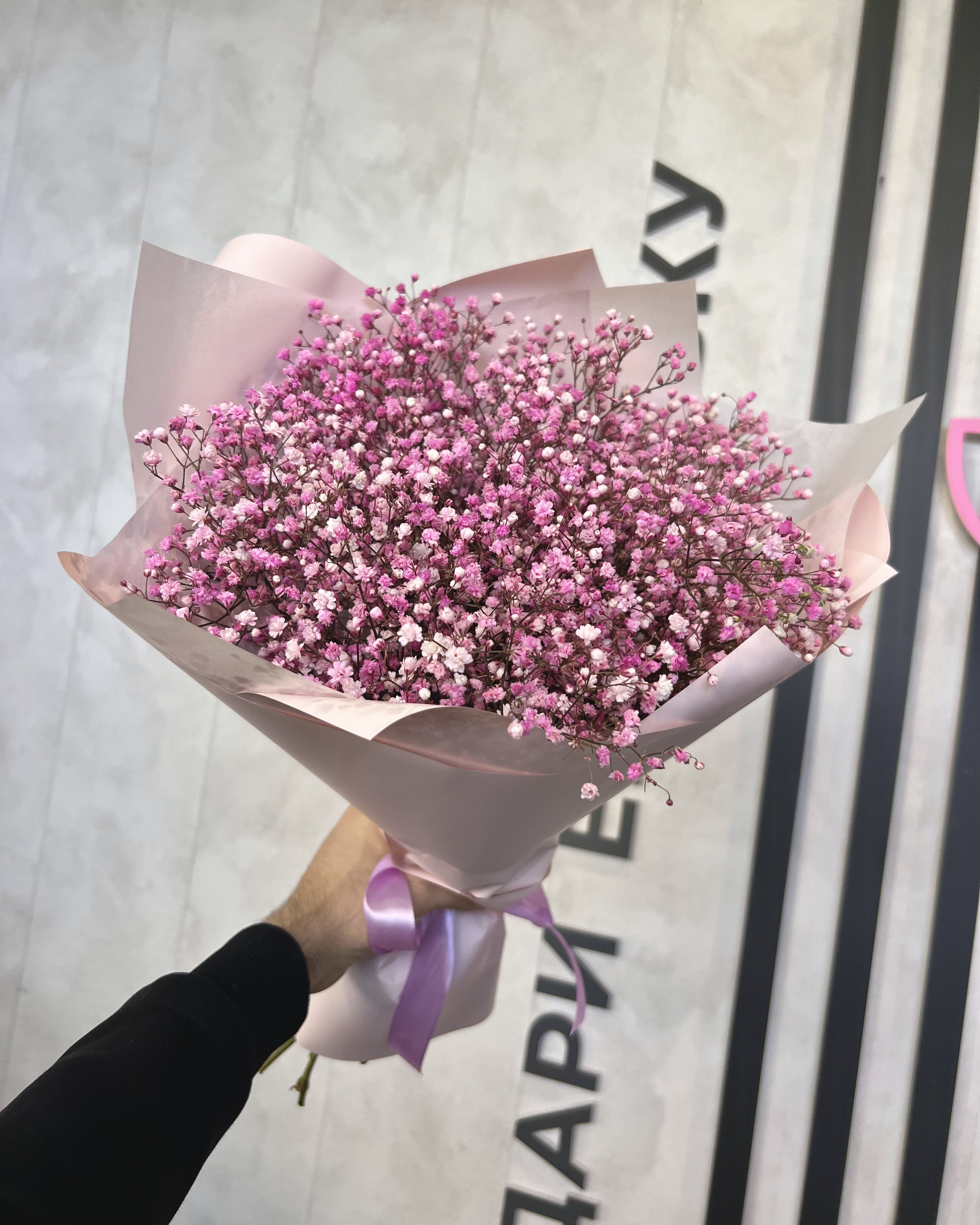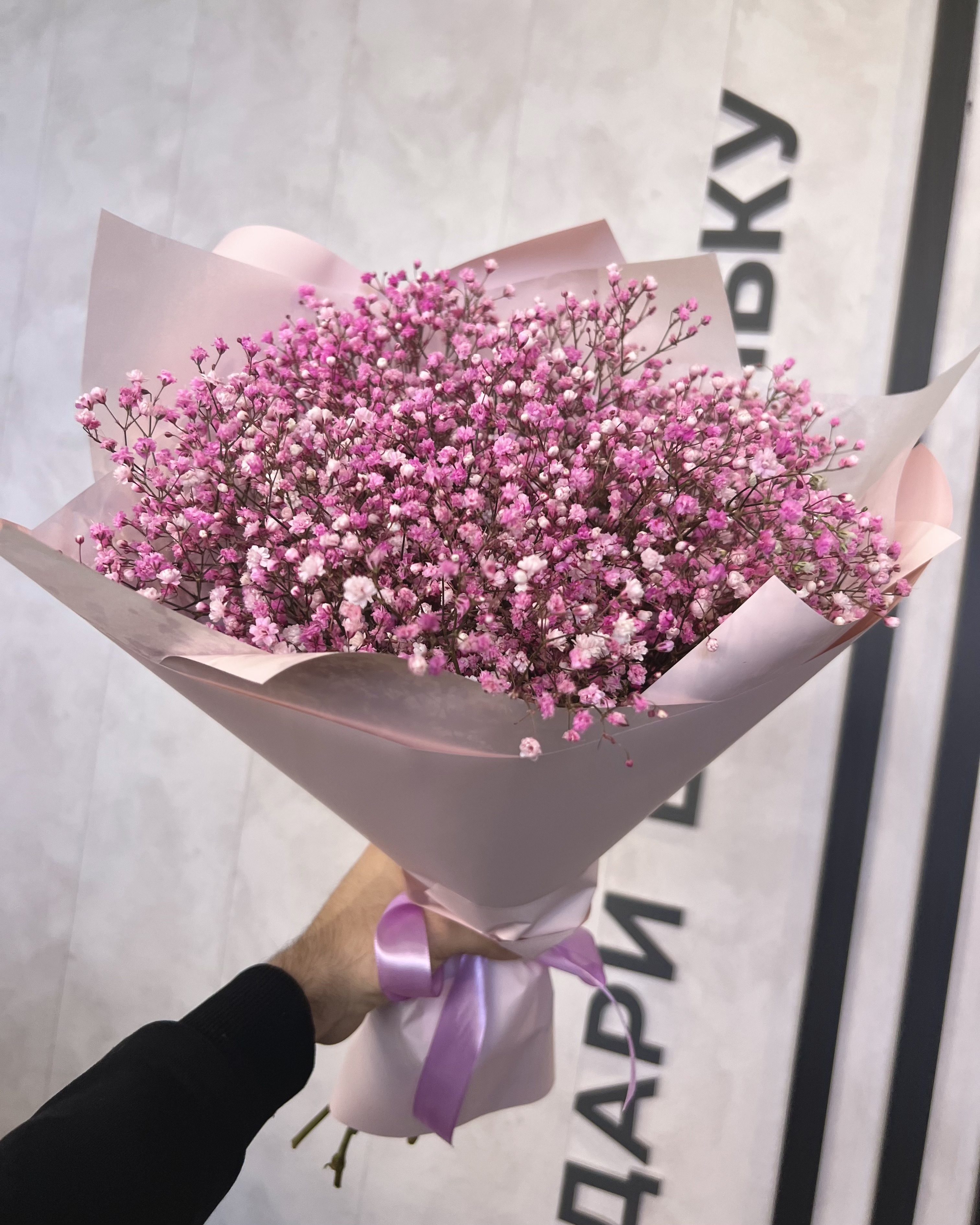 Погрузитесь в нежность и очарование нашего монобукета из розовой гипсофилы! Её утончённые цветы создадут атмосферу романтики и спокойствия, наполнив пространство элегантной красотой. Прекрасный выбор для подарка близким людям или украшения вашего интерьера – букет подчеркнёт изысканный вкус и станет символом чистых чувств и тёплых воспоминаний.